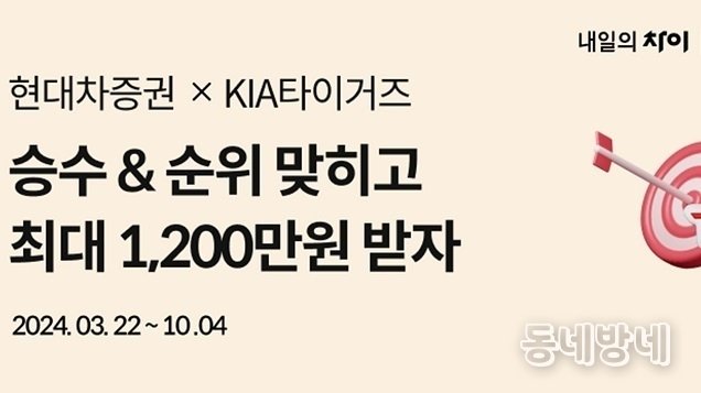 동네방네 기자 | 현대차증권(사장 배형근)은 지난 3월 22일부터 KIA타이거즈와 연계한 연간 순위 적중 및 월간 승수 적중 이벤트를 실시한다고 25일 밝혔다.