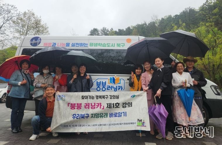 동네방네 김형규 기자 | 대구 북구청은 찾아가는 강의실인 ‘붕붕 러닝카’ 제1호 강의인 “문화해설사와 함께하는 우리북구 지명 유래 알기” 등의 주제로 4월 15일 개최했다.