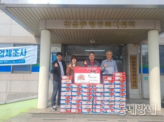 김재은 관음동장은 “모두가 어려운 시기임에도 항상 우리 동 주민들을 위해 아낌없이 후원 해주셔서 감사드리며, 기탁해 주신 물품은 저소득층 주민들에게 잘 전달될 수 있도록 하겠다.”라고 말했다.