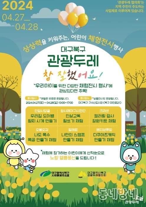 동네방네 김형규 기자 | 대구 북구청은 지역 주민공동체 주도의 관광사업 자립과 발전을 위한 대구 북구 관광두레 주민사업체 개발 상품 전시 및 체험 행사를 4월 27일 부터 28일 이틀간 북구 구수산도서관에서 진행한다.
