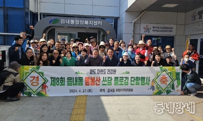 동네방네 김형규 기자 | 대구 북구 읍내동 주민자치위원회는 4월 27일 읍내동 조직단체 회원 및 가족 100여명과 함께 제8회 명봉산 쓰담 플로깅 행사를 추진하여 명봉산 산행 및 팔거천 산책로 대청소를 통해 조직단체 간 결속과 화합을 도모했다.