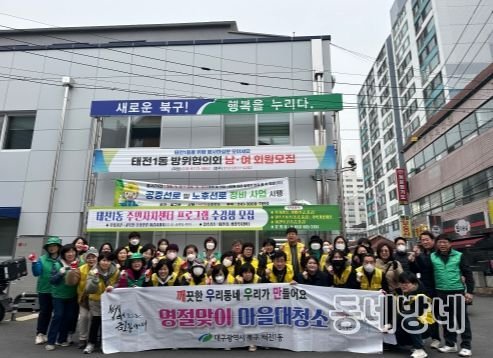 동네방네 김형규 기자 | 대구 북구 태전1동 행정복지센터는 2월 1일 설 연휴 기간 쾌적한 명절 분위기 조성과 깨끗한 태전1동 만들기를 위하여 관내 단체 회원들과 함께 설맞이 합동 대청소를 실시했다.