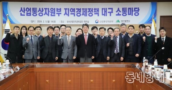 동네방네 김형규 기자 | 대구광역시와 산업통상자원부는 2월 5일 오후 대구성서산업단지관리공단 회의실에서 관계기관과 지역의 대규모 투자기업 등이 참석한 가운데 ‘지역경제정책 대구 소통마당’을 개최했다.