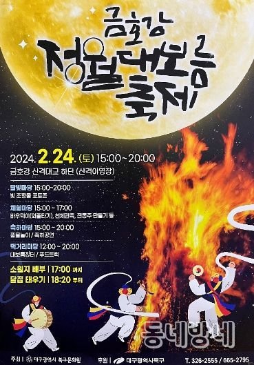 동네방네 김형규 기자 | 대구 북구에서 개최되는『2024 금호강 정월대보름 축제』가 2월 24일(토) 오후 3시부터 금호강 산격대교 둔치(산격야영장)에서 열린다.