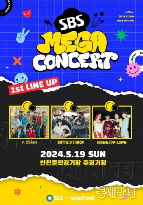 동네방네 기자 | SBS는 5월 19일(일) 인천문학경기장 주경기장에서 개최되는 ‘SBS MEGA 콘서트’의 1차 라인업을 공개했다. 이번 라인업은 ‘보이넥스트도어’, ‘엔싸인’, ‘키스오브라이프’ 등 데뷔와 함께 뜨거운 주목을 받고 있는 슈퍼 루키들로 채워져, 콘서트에 강력한 에너지를 불어넣을 것으로 기대를 모으고 있다.