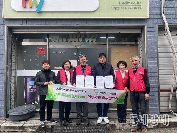 동네방네 김형규 기자 | 대구 북구 고성동 지역사회보장협의체는 2월 23일 ㈜hy태평로점과 ‘함께 두드림(Dream) 안부확인’사업에 대한 업무협약을 체결했다.