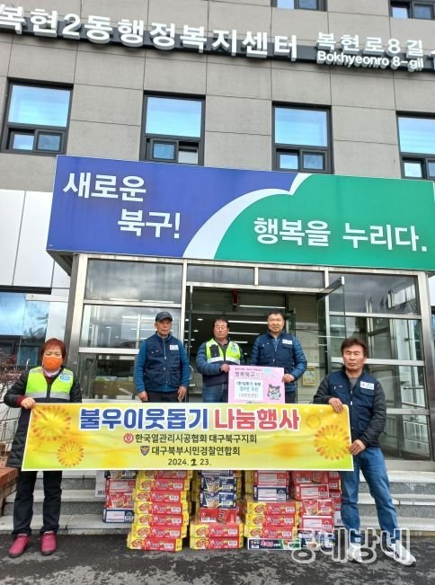 동네방네 김형규 기자 | 한국열관리시공협회 대구북구지회·대구북부시민경찰연합회·군위엔지니어링은 관내 저소득 이웃을 위한 컵라면 세트(100박스)를 2월 23일 복현2동 행정복지센터에 전달했다.