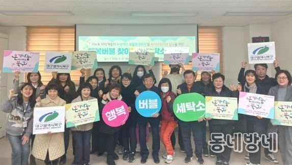 동네방네 김형규 기자 | 대구 북구청은 3월부터 독거노인 등 저소득 취약계층을 위한 ‘행복버블 찾아가는 세탁소’사업을 시행하며, 이를 위해 2월 27일 북구자원봉사센터에서 자원봉사자들과 간담회를 개최했다.