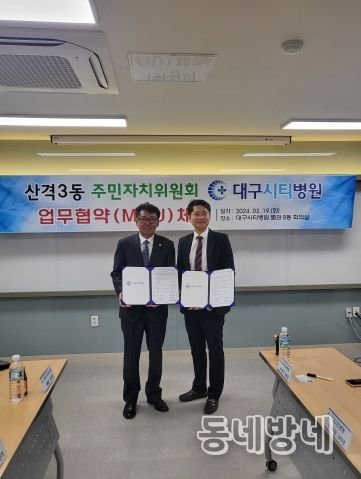 동네방네 김형규 기자 | 대구 북구 산격3동 주민자치위원회는 3월 19일 대구시티병원과 지역주민의 건강보건 향상을 위한 상호협력과 지역사회 기여를 약속하는 업무협약(MOU)을 체결했다.