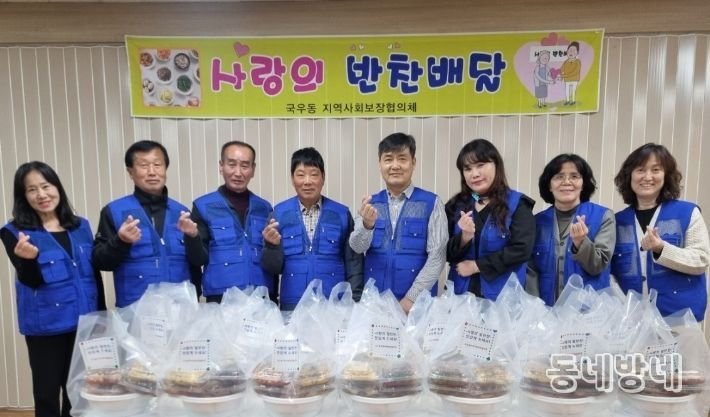 사랑의 밑반찬 지원 사업은 독거노인, 저소득 청장년가구, 한부모가족 등 복지위기가구가 라면, 빵 등의 인스턴트식품 등으로 끼니를 해결하고 있는 것에 착안하여 사회취약계층의 건강 증진을 위해 6년전에 국우동의 특화사업으로 선정됐다.